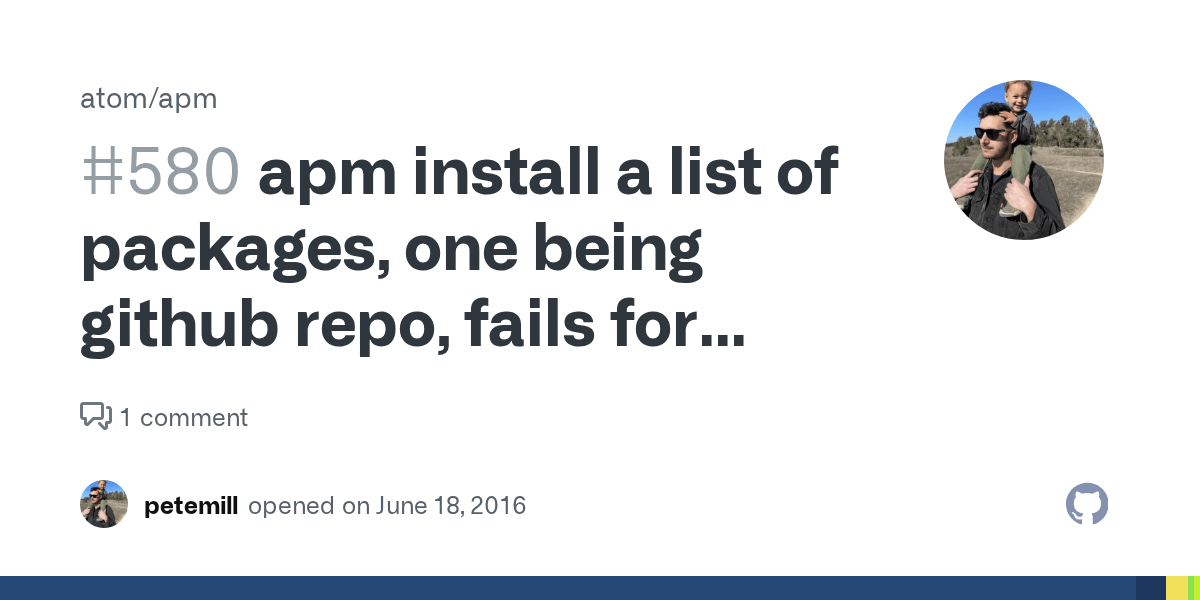 You can also install packages by using the apm install command:.. Run apm install on an online computer. If you do not, see the installing atom section for instructions on how to install the atom and apm commands for your system. Apm コマンドでログインしてパッケージをスターで管理しておくと、違う環境構築の際も atom エディタをダウンロードして apm コマンドで一括インストールできるので便利です。 参考. Obviously, the atom package manager, apm, must be installed (you can enter apm to verify installation). The package usually gets installed in.atom/packages directory in your home directory. This is why you don't need to use sudo while installing atom packages. How to install a package? Open atom, go to edit > preferences > install and search for the package you wish to install. 13.10.2021 · how to install a package?.. Obviously, the atom package manager, apm, must be installed (you can enter apm to verify installation).