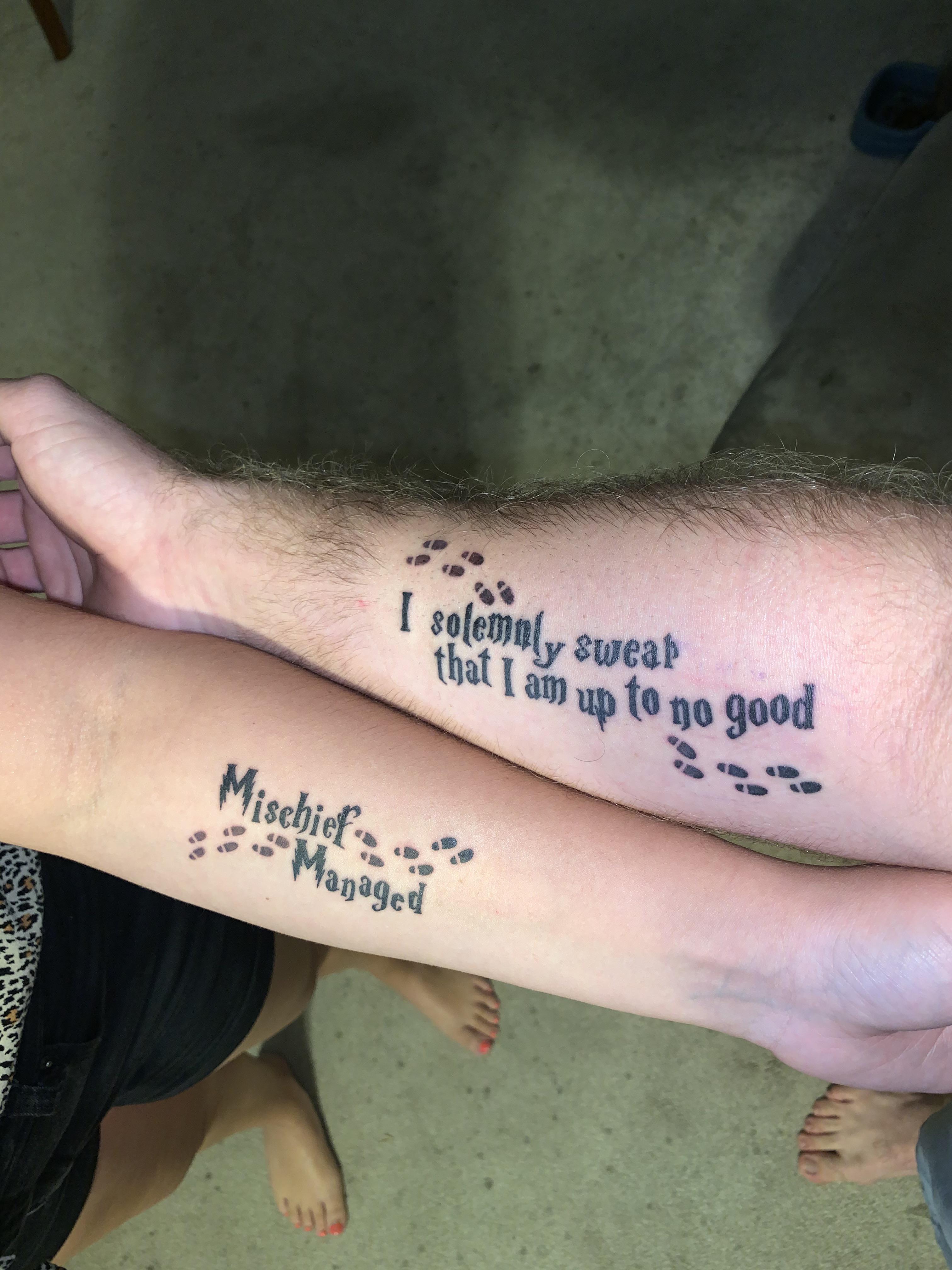 Ideje 163 Harry Potter Tattoo Ideas I Solemnly Swear That I Am Up To No Good Tattoo Zdarma. Jun 15, 2016 · the tattoo has gone viral and has garnered over 1 million views on imgur. The quote, "i solemnly swear that i am.
